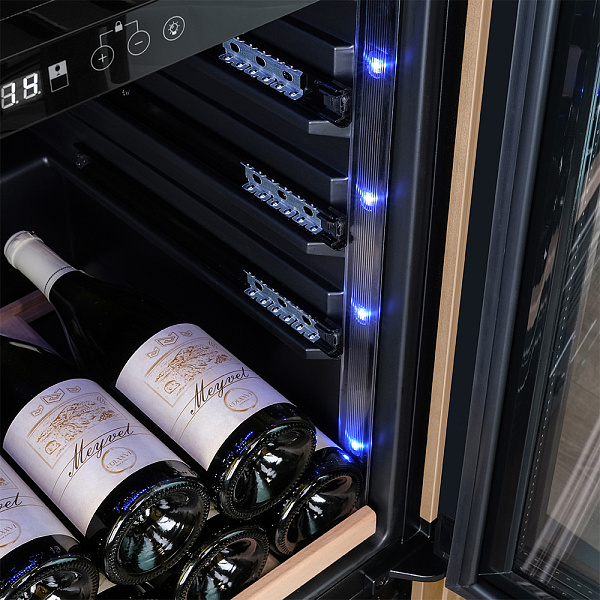 - Две температурные зоны для хранения вин и подготовки их к подаче;