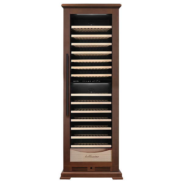 Винный шкаф предназначен для профессионального и длительного хранения различных сортов вин (до 174 бутылок типа Бордо). Он так же оснащен дверью с защитой от ультрафиолетовых лучей и поддерживает влажность в диапазоне 60-80%, как в настоящем винном погребе. Стальной корпус обшит натуральным буком, который выдерживает большие нагрузки и обладает красивой текстурой.
