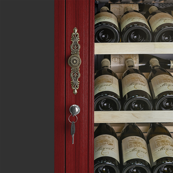 Светодиодное освещение обеспечивает равномерное освещение всего пространства шкафа, позволяя с легкостью выбрать нужную бутылку. А возможность устранения запотевания стекла предотвращает образование конденсата и сохраняет качество вина. Демонстрационные полки делают содержание вина не только удобным, но и презентабельным - вы сможете выставлять лучшие вина коллекции.