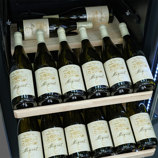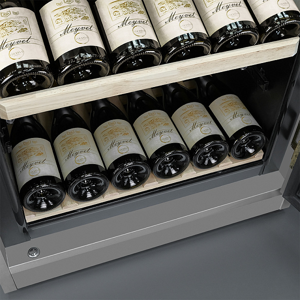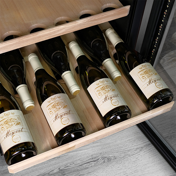 Светодиодное освещение обеспечивает равномерное освещение всего пространства шкафа, позволяя с легкостью выбрать нужную бутылку. А возможность устранения запотевания стекла предотвращает образование конденсата и сохраняет качество вина. Демонстрационные полки делают содержание вина не только удобным, но и презентабельным - вы сможете выставлять лучшие вина коллекции.
