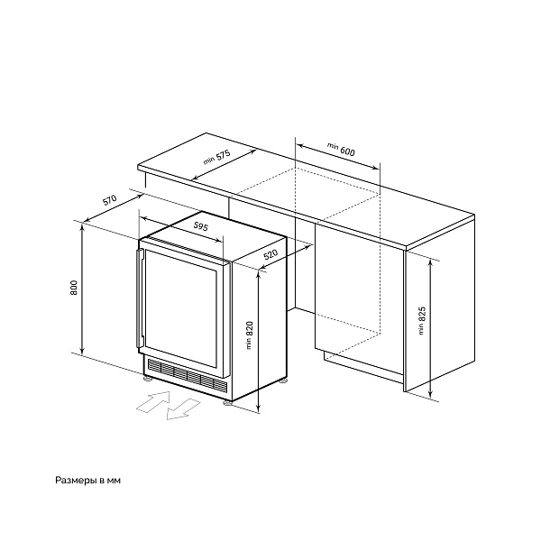 Модель вмещает до 46 бутылок, а пять регулируемых полок позволяют удобно организовать пространство под разные размеры бутылок. Компактные габариты (820х595х570 мм) дают возможность разместить шкаф в любом удобном месте, включая установку под столешницу.