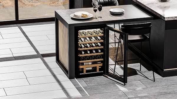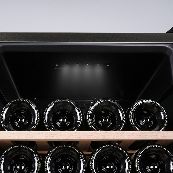 Уникальная система контроля температуры и влажности поддерживает оптимальные условия для длительного содержания напитков — от +5 до +18°C и влажность 60-80%. Двойное стекло с УФ-фильтром защищает бутылки от вредного воздействия солнечных лучей, сохраняя их превосходный вкус и аромат.