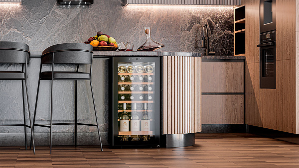Изящная подсветка внутреннего пространства создаст особую атмосферу винного уголка. Регулируемые ножки помогут идеально выровнять шкаф, а утопленная ручка обеспечит его компактность и аккуратный внешний вид.