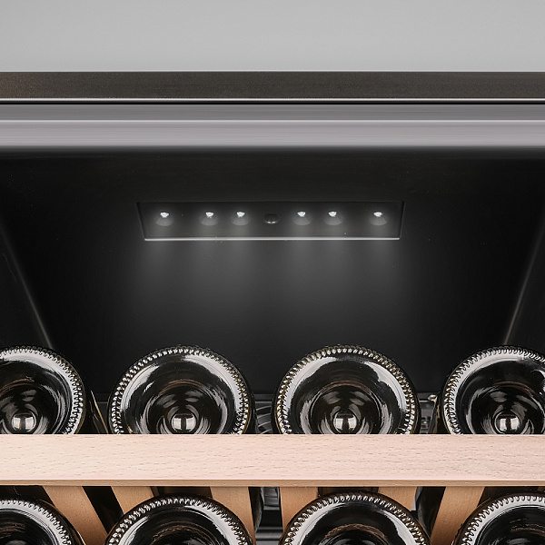 Уникальная система контроля температуры и влажности поддерживает оптимальные условия для длительного содержания напитков — от +5 до +18°C и влажность 60-80%. Двойное стекло с УФ-фильтром защищает бутылки от вредного воздействия солнечных лучей, сохраняя их превосходный вкус и аромат.