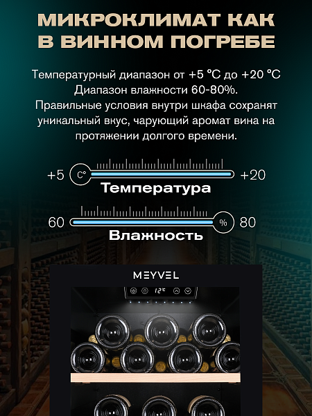 Винный шкаф Meyvel MV105-KBF1 — это сочетание стиля, функциональности и надежности, которое станет надежным помощником в создании винной коллекции.