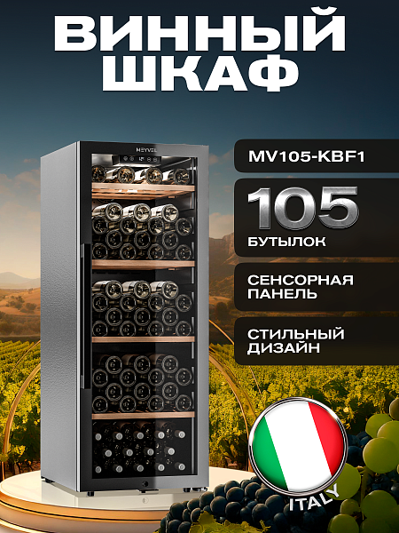 Винный шкаф Meyvel MV105-KBF1 — идеальное решение для истинных ценителей вина, который вмещает до 105 бутылок вашего любимого напитка и хранит их в оптимальных условиях.