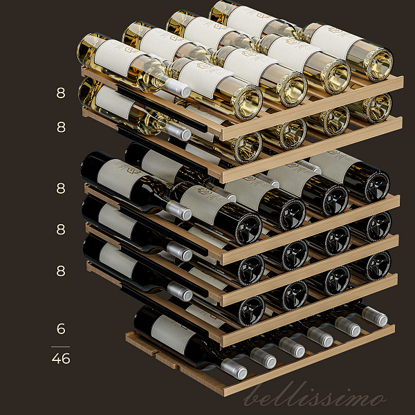 - Вместимость 46 бутылок стандартного типа Бордо (0,75 л);