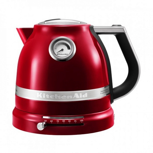 Рычаг переключения температур (от 50 до 100 градусов) подсвечен LED индикатором. Корпус чайника сделан из металла и имеет двойные стенки, что создает эффект термоса. Встроенный независимый термометр покажет температуру воды даже если чайник не стоит на базе. Удобная ручка не скользит, так как покрыта материалом Soft Touch. Под ручкой находится окошко с делениями для измерения уровня воды. Чайник оснащен сетчатым фильтром от накипи, имеет поворотную базу, на которую удобно ставить прибор любой рукой. Эмалированный корпус легко очищается от загрязнений.