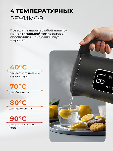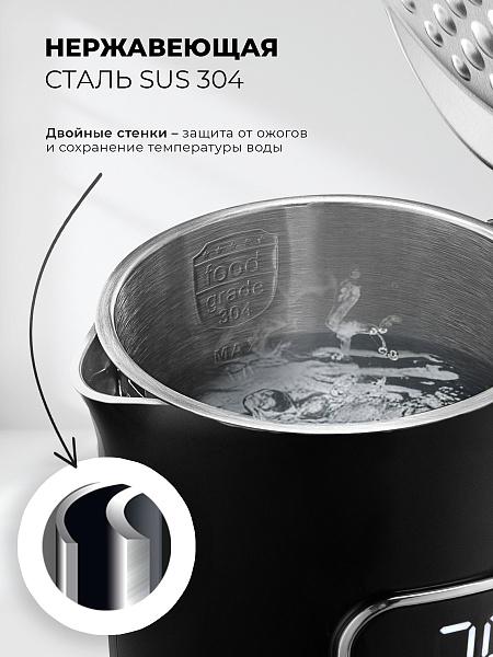 Этот чайник сочетает в себе стильный дизайн и функциональность, делая его идеальным выбором для вашей кухни. Вы сможете наслаждаться свежим и ароматным чаем в любое время дня, зная, что ваш чайник обеспечивает безопасность и комфорт.