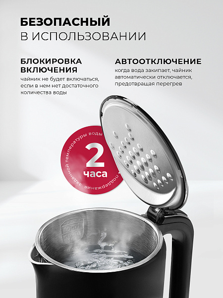 Блокировка включения без воды — еще один важный аспект безопасности. Чайник не будет включаться, если в нем нет достаточного количества воды, что защищает его от повреждений и повышает его долговечность.
