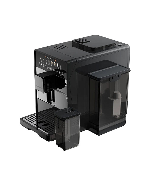 Объем контейнера для зерен составляет 150 грамм, а емкость для воды имеет объем 2 литра. Кофемашина оснащена автоматическим капучинатором, который позволяет легко приготовить молочные напитки.