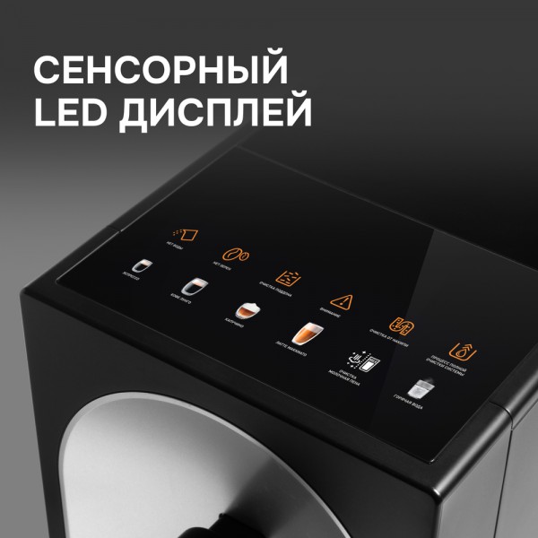 Обслуживание и очистка кофемашины не доставят особого труда. Устройство само оповестит о необходимости очистки, добавления зерен или воды.
