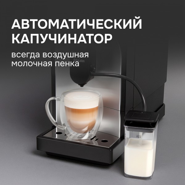 Комплектация: кофемашина, резервуар для молока, шланг для молока, щеточка для чистки, инструкция, гарантийный талон.