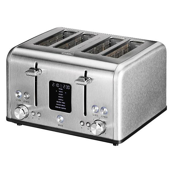 Тостер оснащен четырьмя отделениями для тостов и имеет мощность 1630 Вт, что гарантирует быстрое и равномерное обжаривание. Механическое управление делает использование тостера простым и удобным.