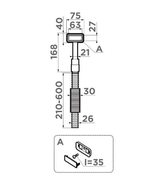 Сменный прямоугольный перелив для арматуры серии WK подходит для моек с прямойгольным переливом.