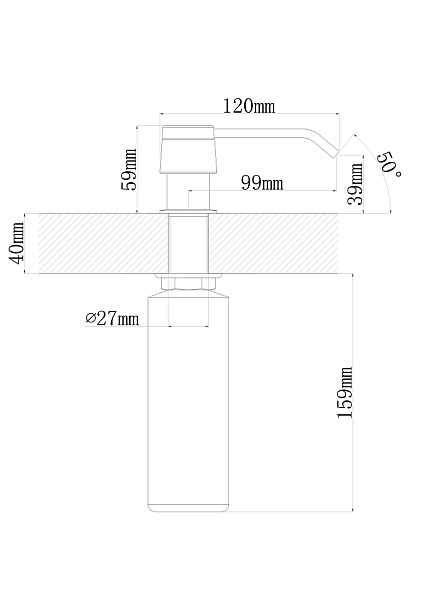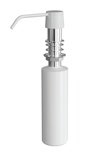 Корпус выполнен из прочного композитного материала, устойчивого к воздействию бытовой химии. Дозатор подаёт нужное количество средства одним нажатием — это удобнее и гигиеничнее, чем отдельная бутылка на столешнице.