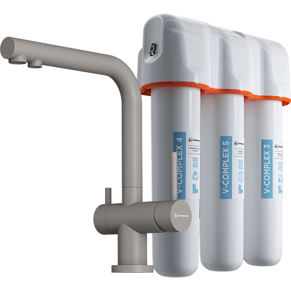 OMOIKIRI NAGANO-GR-P + PURE DROP LITE смеситель + фильтр серый