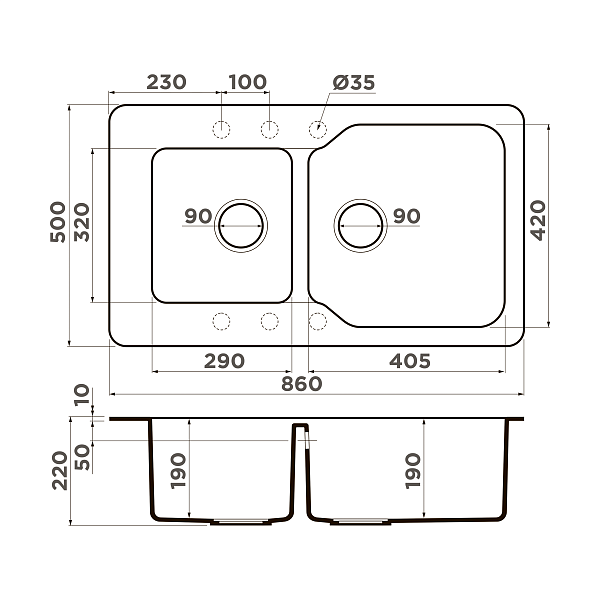 OMOIKIRI MARU 86-2-CH мойка шампань