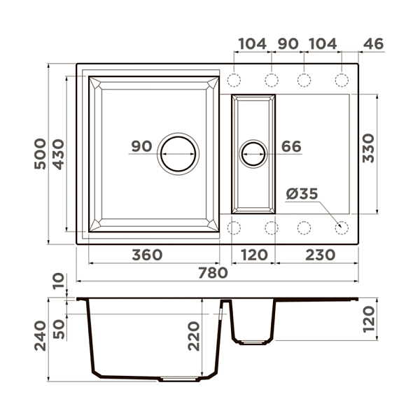 OMOIKIRI SAKAIME 78-2-CH мойка бежевый