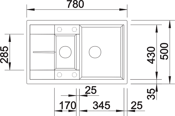 Превосходная вместимость чаш при небольших размерах мойки