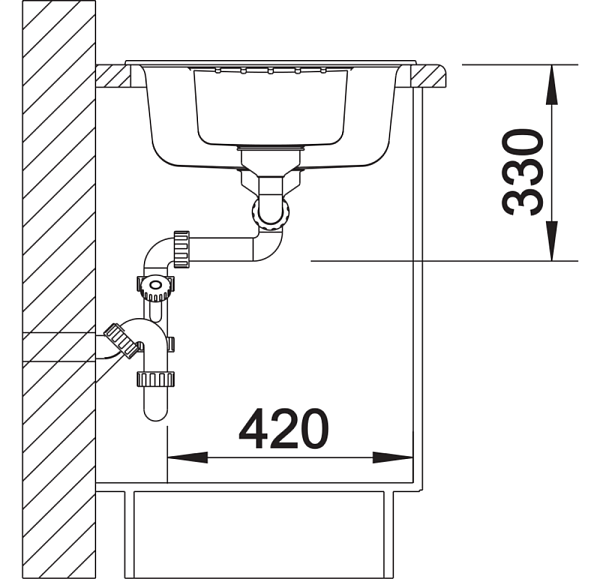 *Учитывать ширину пристенного канта в случае установки мойки возле стены или пенала.