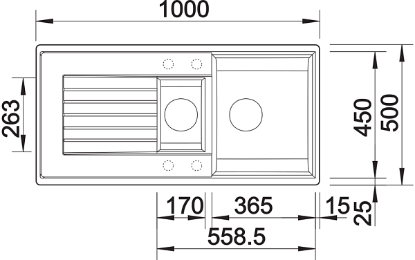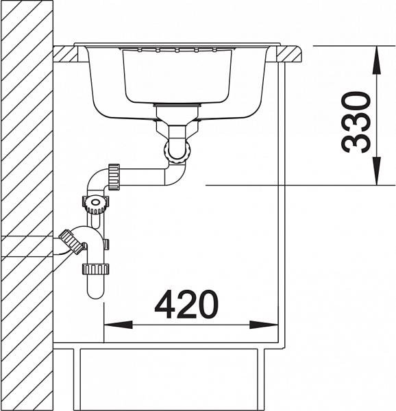 *Учитывать ширину пристенного канта в случае установки мойки возле стены или пенала.