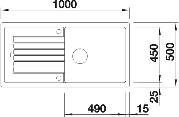 *Учитывать ширину пристенного канта в случае установки мойки возле стены или пенала.