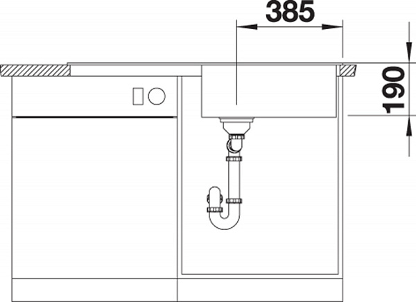 *Учитывать ширину пристенного канта в случае установки мойки возле стены или пенала.