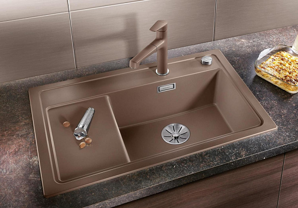 Разделочная доска из безопасного стекла, входящая в комплект, плавно перемещается вдоль поверхности, создавая комфортные условия для эксплуатации. Мойка оснащена клапаном-автоматом, позволяющим удобно закрывать и открывать вентиль. Скрытый перелив C-overflow помогает и отводная арматура с корзинчатым вентилем InFino™ 3 ½“ удобно интегрированы и просты в уходе.
