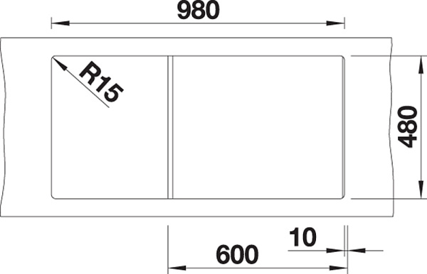 *Учитывать ширину пристенного канта в случае установки мойки возле стены или пенала.