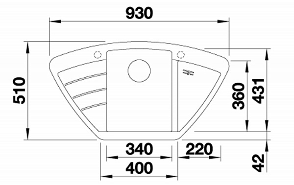 Вместительная чаша с маленьким радиусом закругления находится по центру. Слева расположено небольшое практичное крыло с выемками, а правостороннее крыло находится в углублении и оснащено дополнительным изливом для увеличения функциональности.