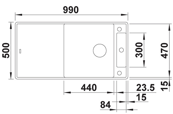 Исключительно просторная основная чаша с интегрированным практичным переливом
