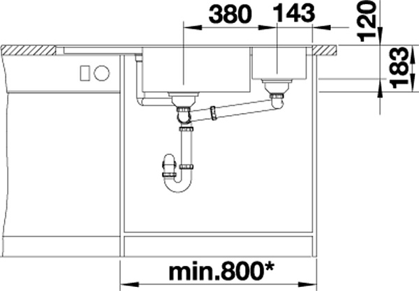 Большая диагональ чаши облегчает мытье посуды больших размеров, например, противня