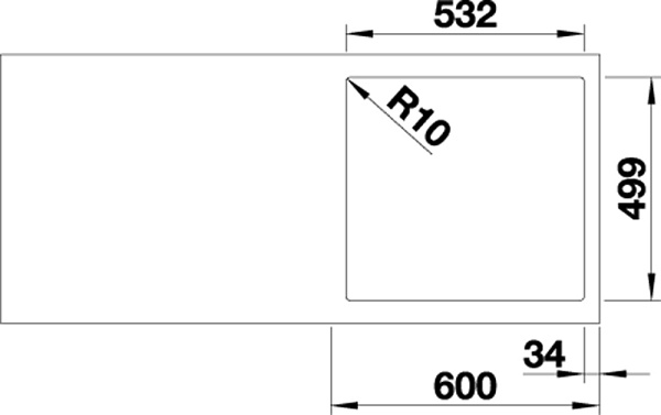 Устанавливается в столешницу сверху, подходит для ламинированных столешниц