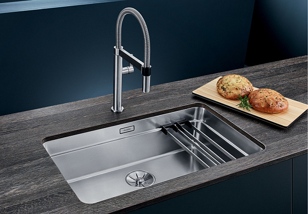 Вместительная ступенчатая мойка с функциональностью моечного центра