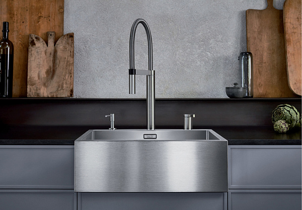 Cronos XL 6-IF - большая прямоугольная кухонная мойка из высококлассной нержавеющей стали от немецкого завода SteelArt Blanco. Эксклюзивное качество и индивидуальное исполнение. Высота передней части (фасада) мойки регулируется индивидуально: минимум 201 мм, максимум 291 мм. Мойка Blanco Cronos XL 6-IF идеально подойдет для кухни в индустриальном стиле, стиле лофт или минимал. Эта мойка притягивает к себе взгляды благодаря необычной конструкции и дизайну: сочетание классической формы большой раковины и современного исполнения в строгой и элегантной нержавеющей стали. Конструкция с широким выступающим фасадом мойки придает ей уникальный, немного брутальный и стильный внешний