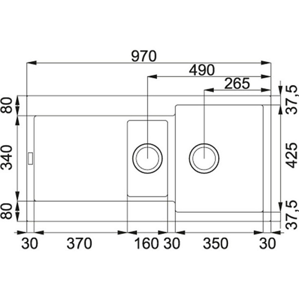 Отверстия под смеситель (2 шт.), предварительно сформированы с обратной стороны