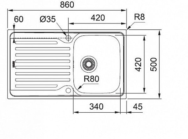 Отверстия под смеситель (2 шт.), предварительно сформированы с обратной стороны