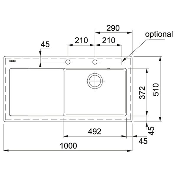 Отверстия под смеситель (2 шт.), предварительно сформированы с обратной стороны