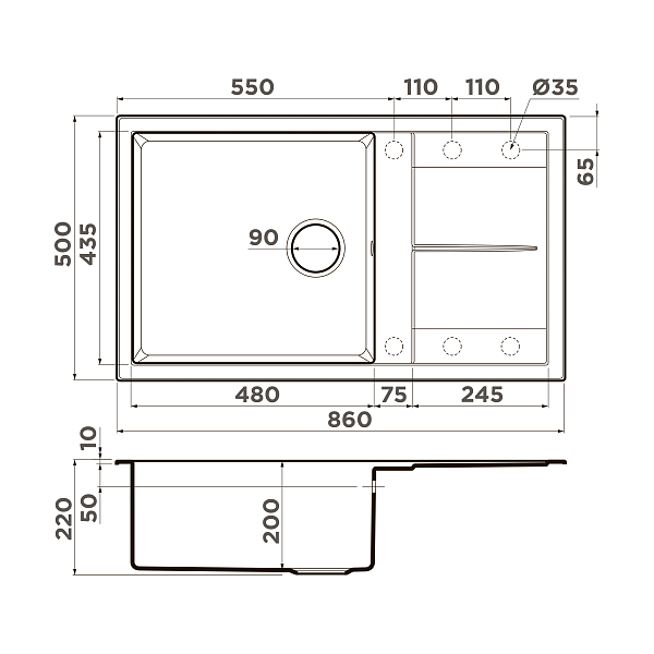 • За счет окрашивания каждой частицы гранитного материала при помощи специальной технологии, первоначальный цвет мойки гарантировано сохраняется в течение всего срока службы;