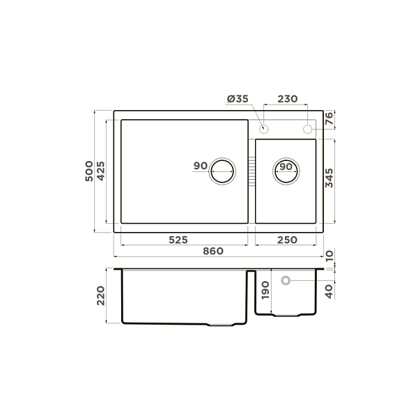 OMOIKIRI TEDORI 86-2-LB-GR мойка серый