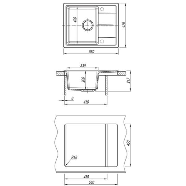 Классическая мойка с крылом. Элегантный дизайн. Модель оборачиваемая
