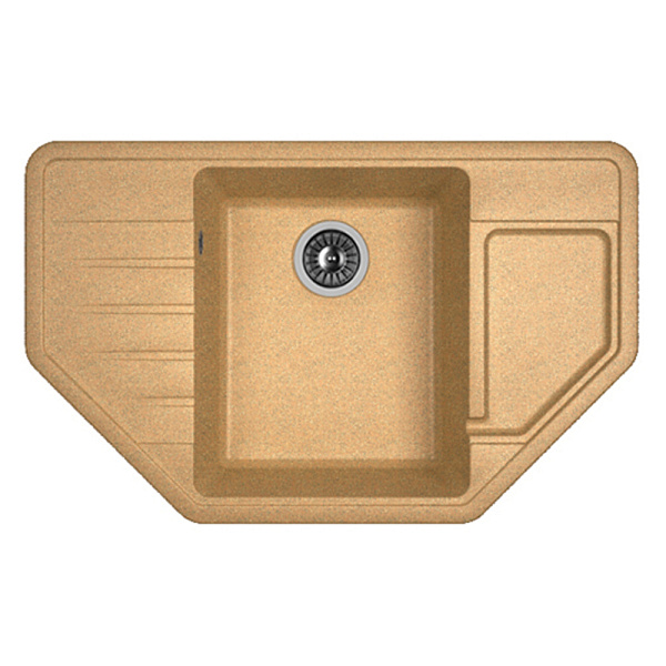 Угловая мойка с четкими контурами. Вместительная чаша. Дополнительные отверстия под аксессуары.