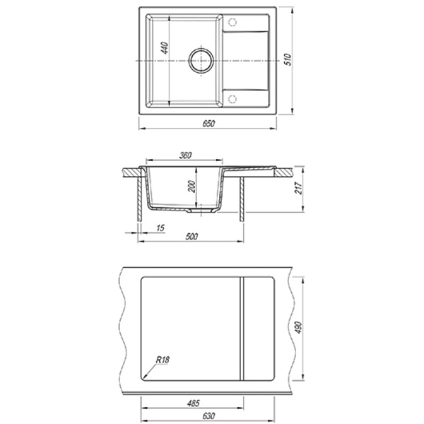 Компактная мойка с одной чашей. Элегантный строгий дизайн. Модель оборачиваемая.