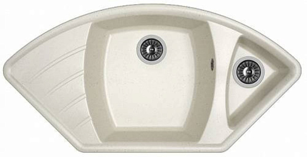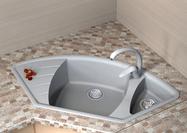Профессиональная угловая мойка с дополнительной малой чашей и рельефным крылом. Вместительная основная чаша.