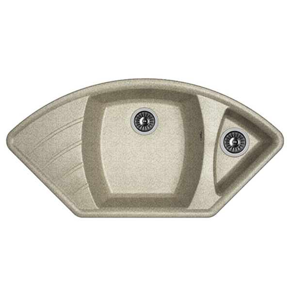 Профессиональная угловая мойка с дополнительной малой чашей и рельефным крылом. Вместительная основная чаша.