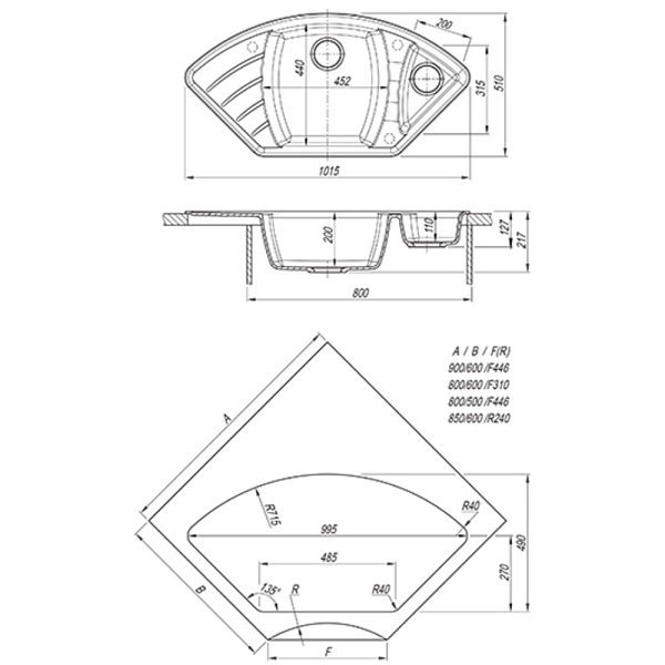 Размер чаши: 454х440х200/200х315х110 мм