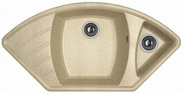 Профессиональная угловая мойка с дополнительной малой чашей и рельефным крылом. Вместительная основная чаша.
