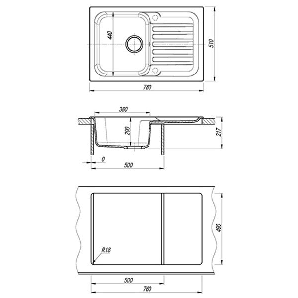 Классическая мойка с одной чашей и крылом. Элегантный дизайн. Модель оборачиваемая.