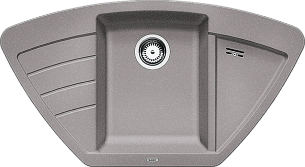 Вместительная чаша с маленьким радиусом закругления находится по центру. Слева расположено небольшое практичное крыло с выемками, а правостороннее крыло находится в углублении и оснащено дополнительным изливом для увеличения функциональности.